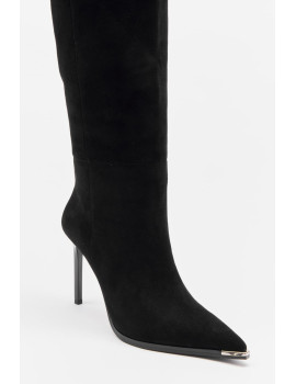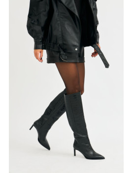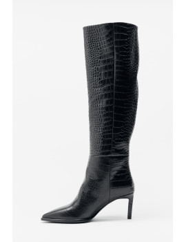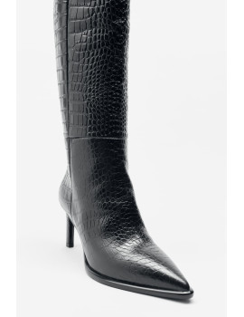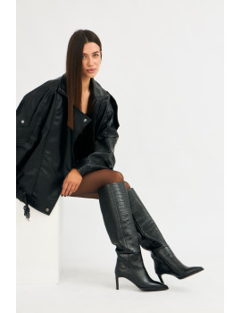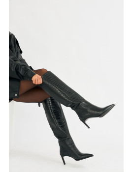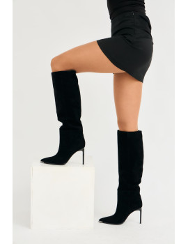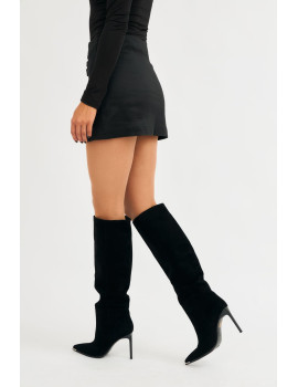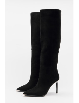 Сапоги 2135 выполнены из качественной натуральной кожи и представлены в черном цвете. Натуральная кожа обеспечивает не только привлекательный внешний вид, но и комфорт при носке. Отсутствие молнию на голенище, заостренный мыс с металлическим декором и устойчивый каблук-шпилька придает сапогам женственный вид.