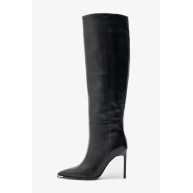 Сапоги 2135P3 выполнены из качественной натуральной замши и представлены в черном цвете. Натуральная замша обеспечивает не только привлекательный внешний вид, но и комфорт при носке. Отсутствие молнию на голенище, заостренный мыс с металлическим декором и устойчивый каблук-шпилька придает сапогам женственный вид.