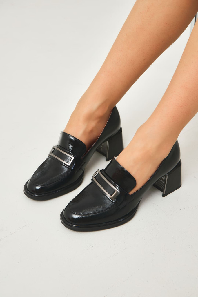 Изготовленные из высококачественной натуральной лаковой кожи черного цвета, эти туфли обещают долговечность, удобство и элегантность.