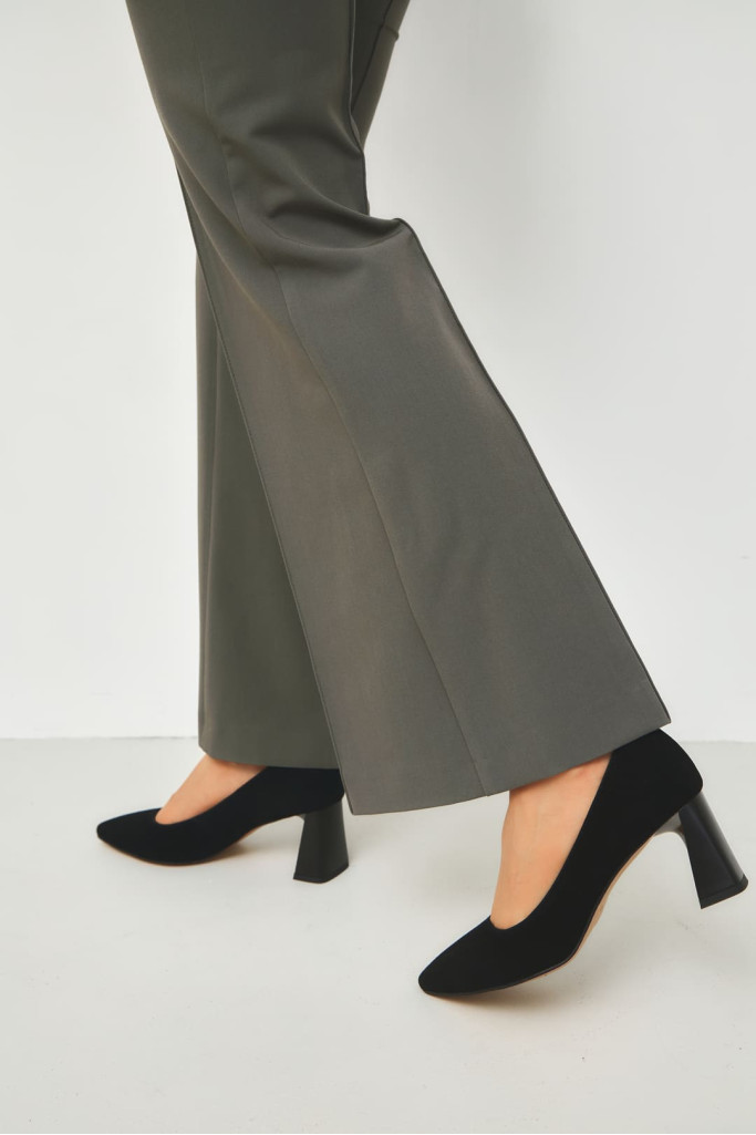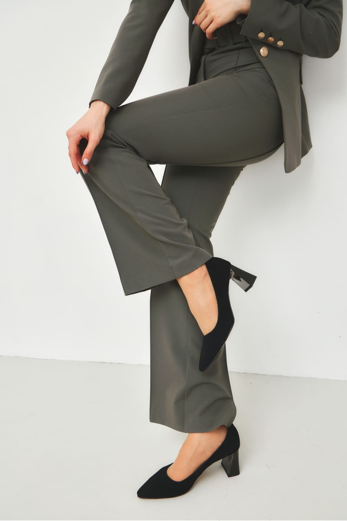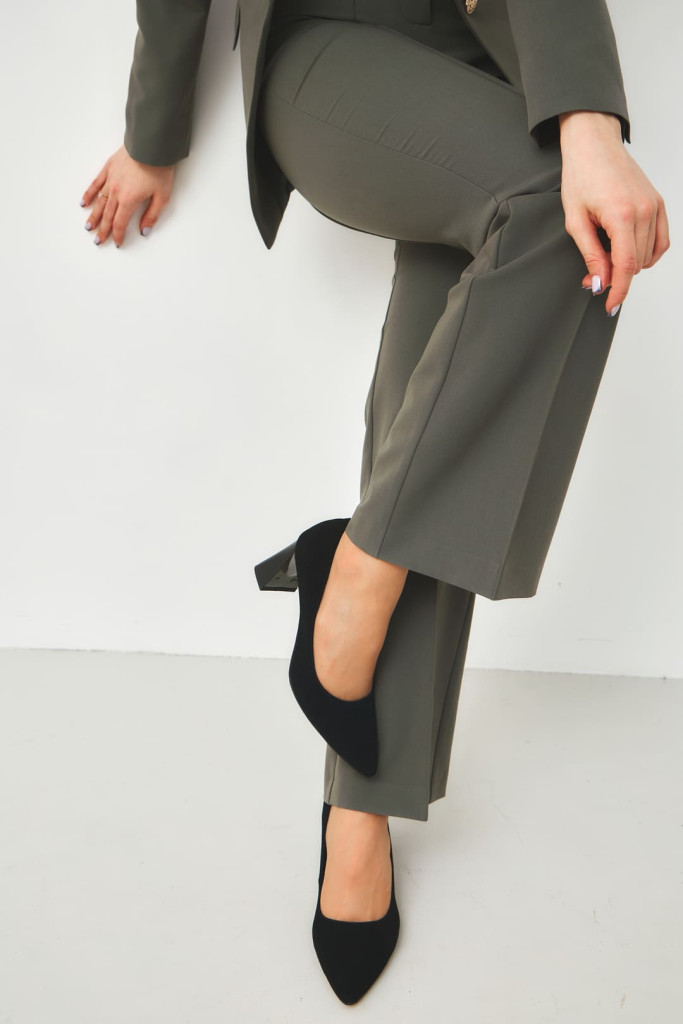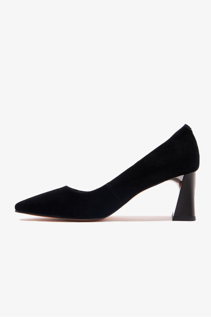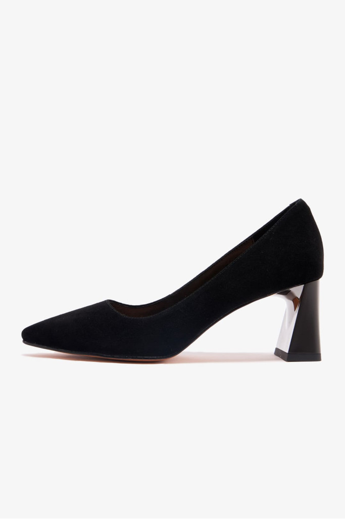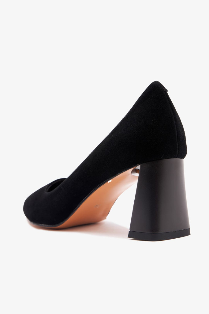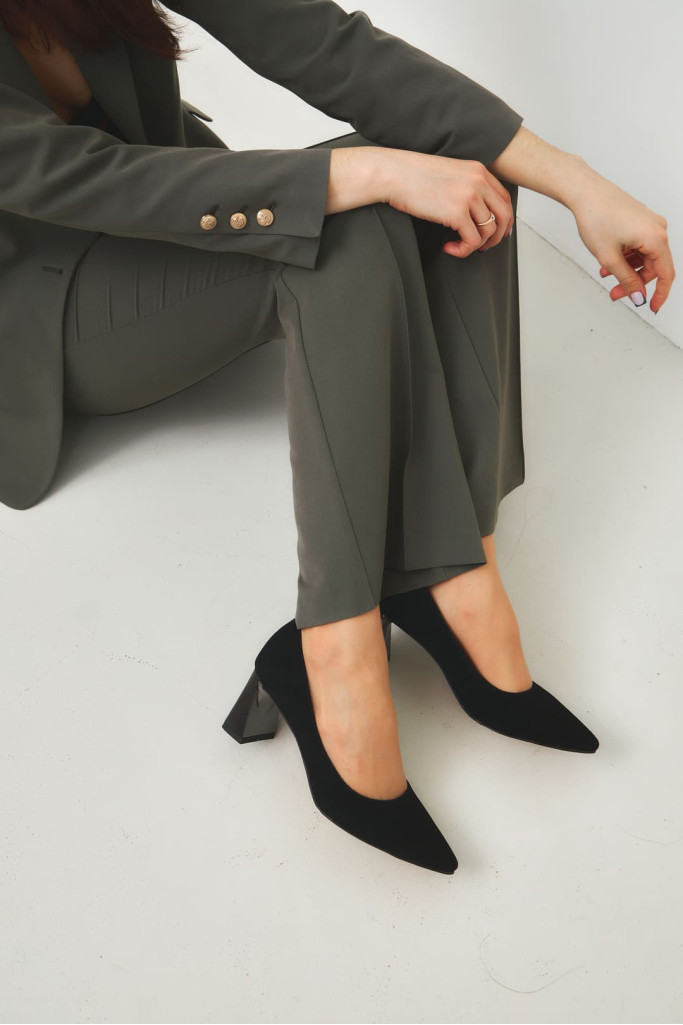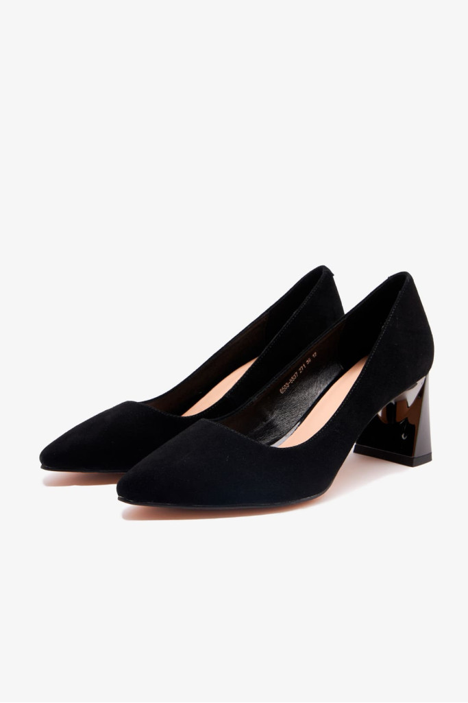 Туфли 1536 выглядят очень стильно и элегантно. Черный цвет делает их универсальными и легко сочетаемыми с различными нарядами. Качественная натуральная замша обеспечивает комфорт и долговечность, а дизайн на внутренней части каблука с металлическим декором придает им изысканность.