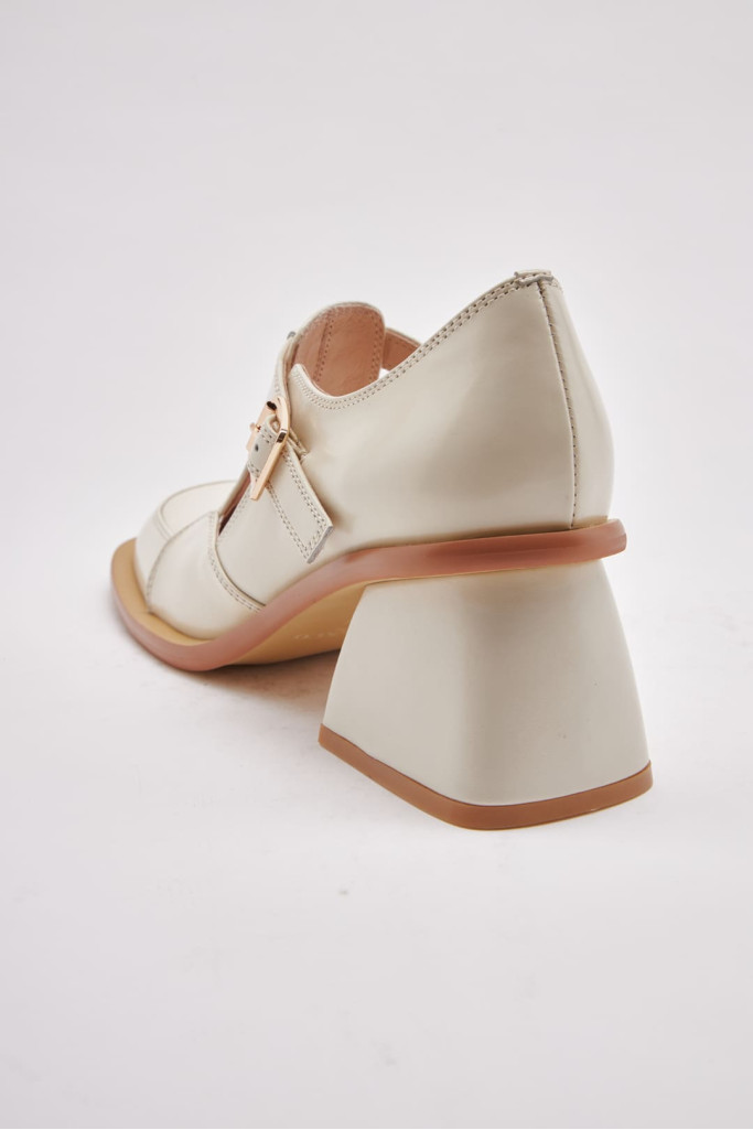 Туфли 1574G изготовлены из качественной натуральной кожи молочного цвета и представляют собой стильный и универсальный выбор для вашей коллекции обуви. Их дизайн, включающий прямоугольный мысок, удобную колодку и устойчивый каблук, обеспечивает комфорт и элегантность.