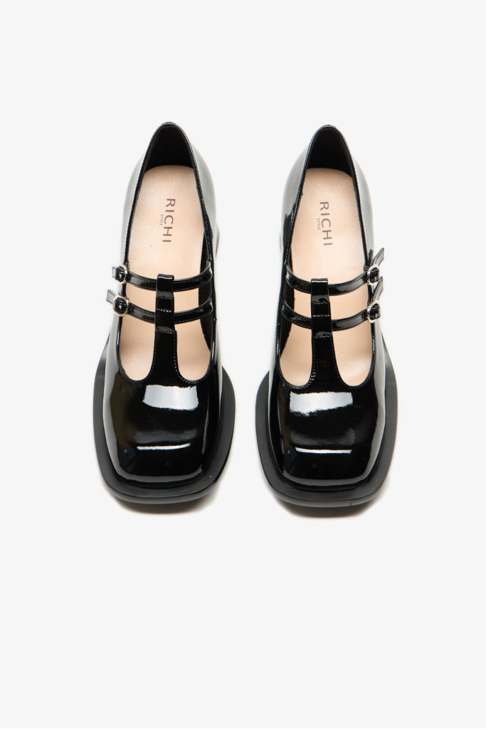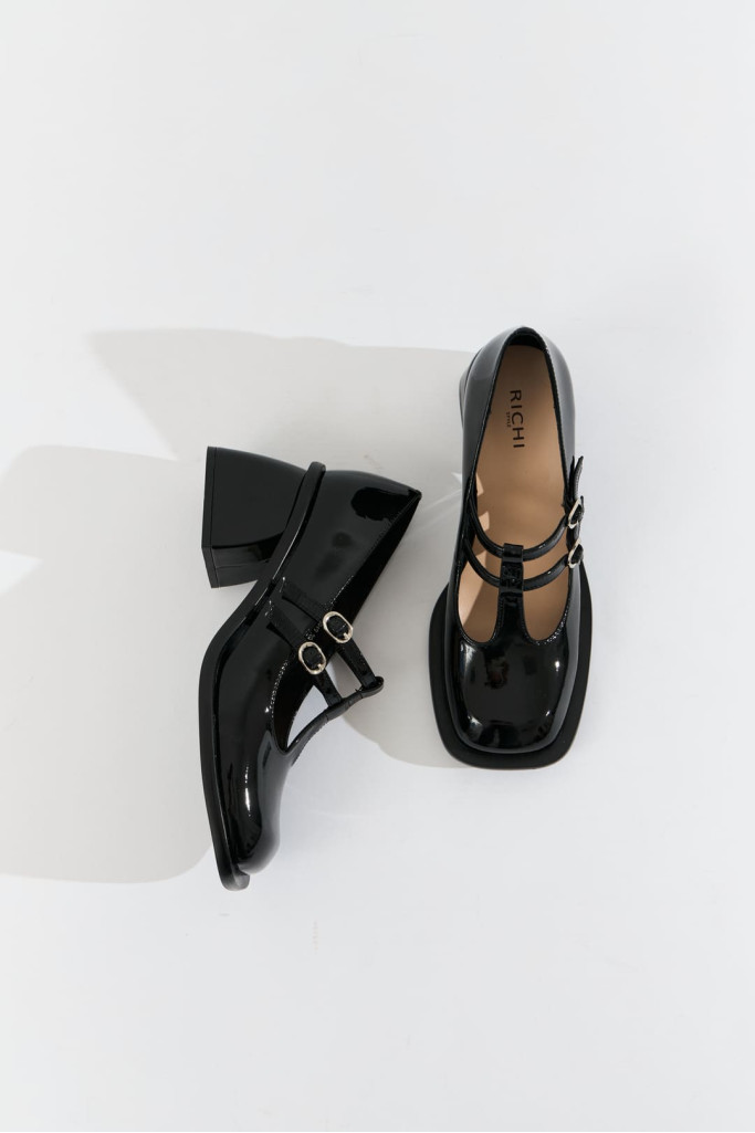 Изготовленные из высококачественной натуральной лаковой кожи черного цвета, эти туфли обещают долговечность и удобство.