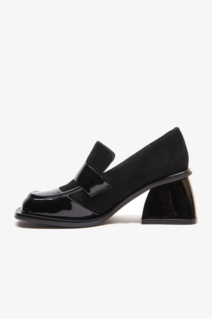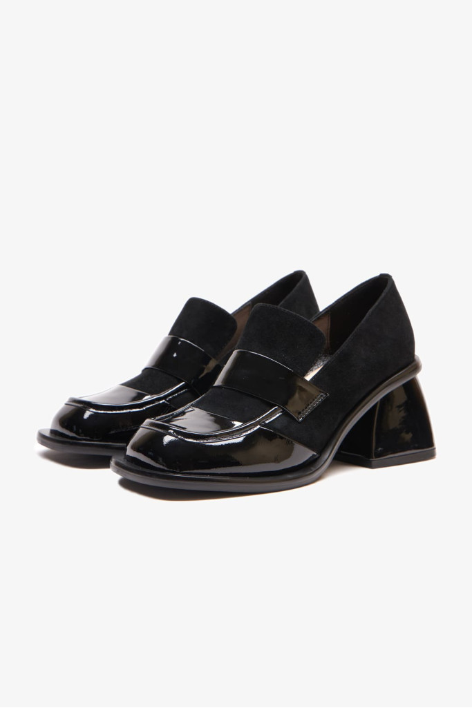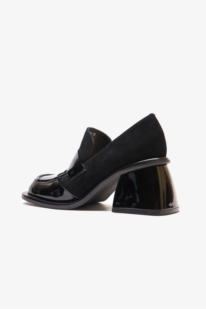 Изготовленные из комбинации высококачественной натуральной лаковой кожи и натуральной замши в черном цвете, эти туфли обещают долговечность, удобство и элегантность.