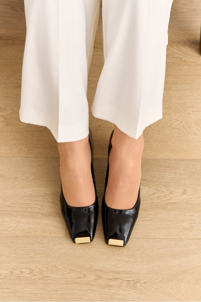 Туфли 2221 выглядят очень стильно и элегантно. Черный цвет делает их универсальными и легко сочетаемыми с различными нарядами. Качественная натуральная лаковая кожа обеспечивает комфорт и долговечность, а металлический мыс придает им изысканность.