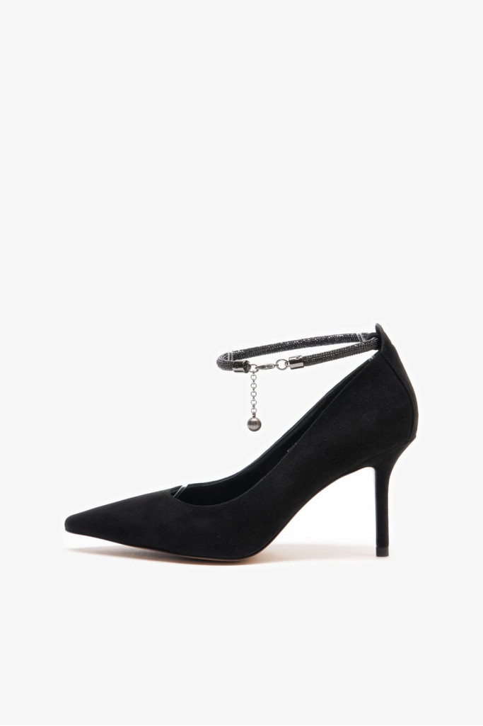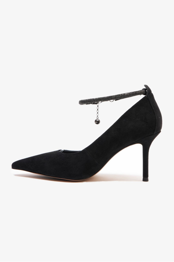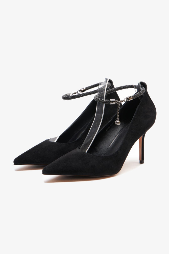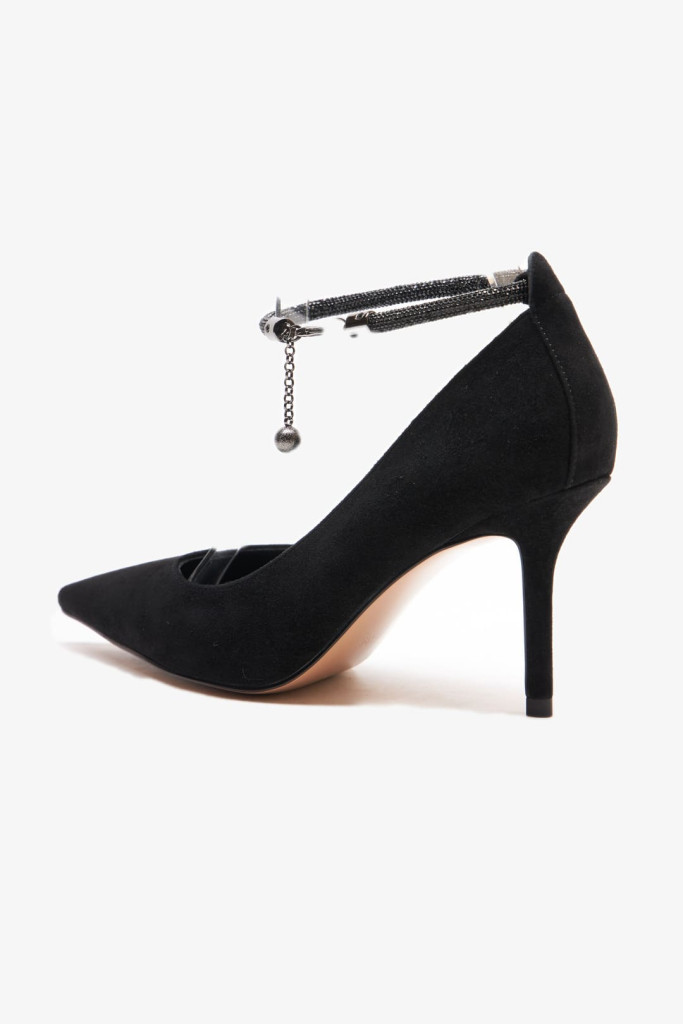 Удобная колодка, заостренный и закрытый мыс, ремешок со стразами на щиколотке делают эти туфли универсальными и подходящими для различных событий. Каблук-шпилька добавляет женственности и элегантности Вашему образу.