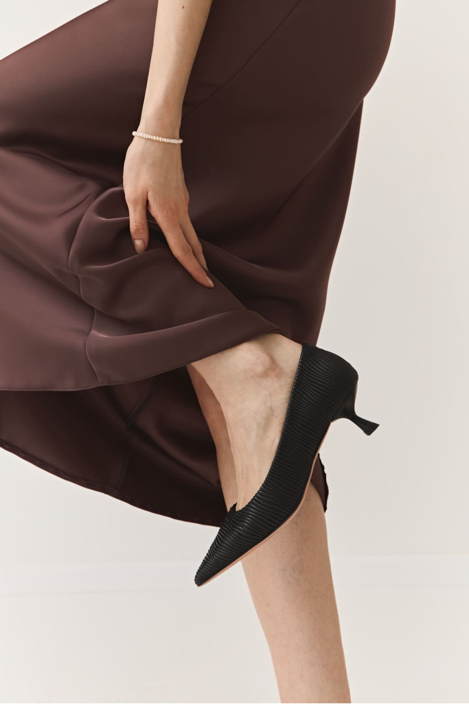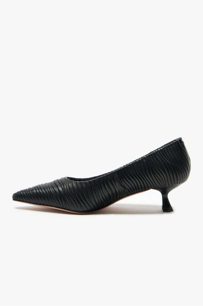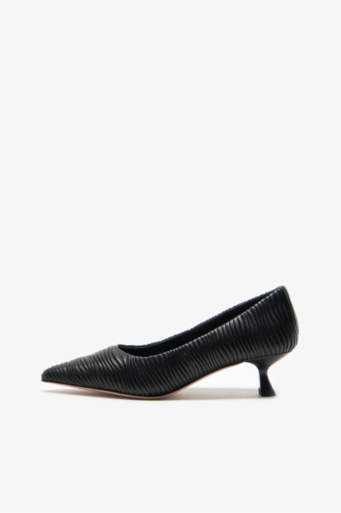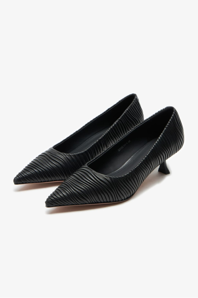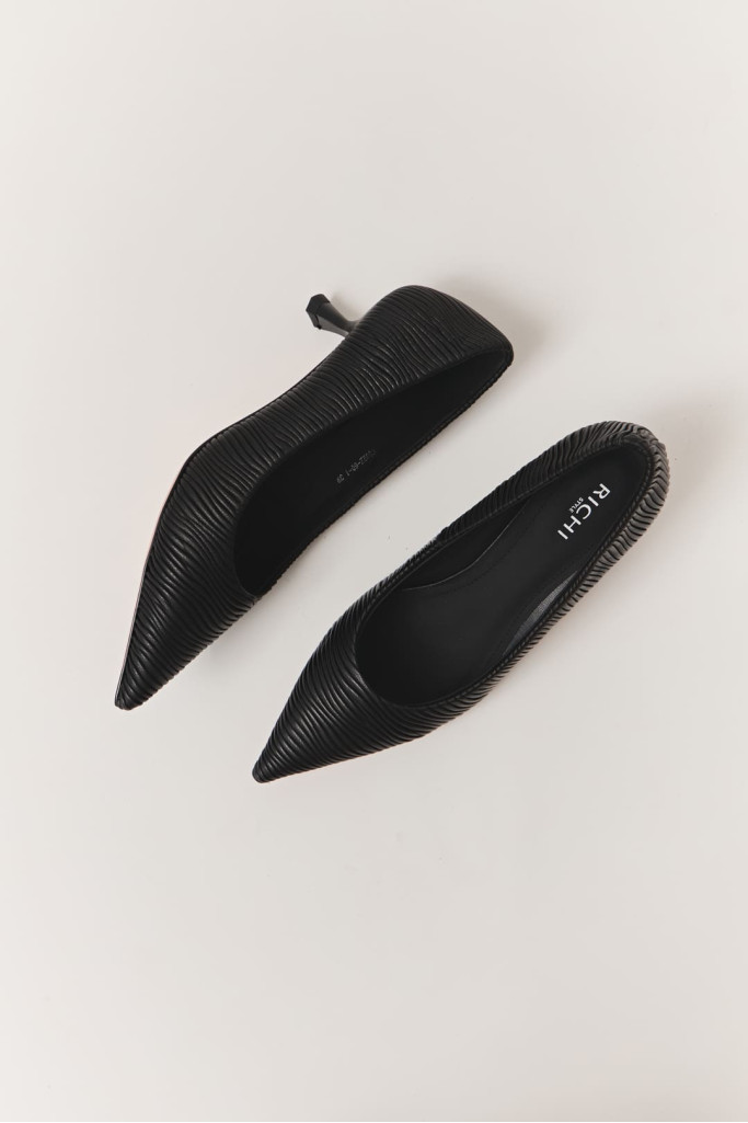 Туфли 2271P выглядят очень стильно и элегантно. Черный цвет делает их универсальными и легко сочетаемыми с различными нарядами. Качественная натуральная кожа обеспечивает комфорт и долговечность, а заостренный мыс и устойчивый каблук-рюмочка делают эти туфли не только стильными, но и удобными для повседневной носки. Они подойдут как для делового офисного образа, так и для более повседневных ситуаций, например, для похода в кино или на свидание.