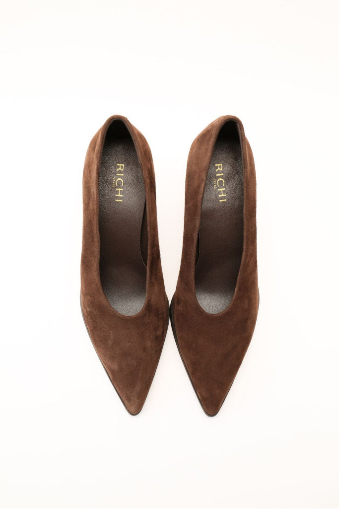 Туфли 2446 выглядят очень стильно и элегантно. Шоколадный цвет делает их универсальными и легко сочетаемыми с различными нарядами. Качественная натуральная замша обеспечивает комфорт и долговечность, а заостренный мыс и устойчивый каблук-шпилька делают эти туфли не только стильными, но и удобными для повседневной носки. Они подойдут как для делового офисного образа, так и для более повседневных ситуаций, например, для похода в кино или на свидание.